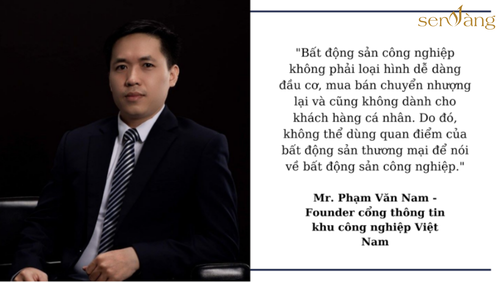 Theo ông Phạm Văn Nam – Founder cổng thông tin điện tử Việt Nam “Bất động sản công nghiệp không phải loại hình dễ dàng đầu cơ, mua bán chuyển nhượng lại và cũng không dành cho khách hàng cá nhân. Do đó, không thể dùng quan điểm của bất động sản thương mại để nói về bất động sản công nghiệp.”