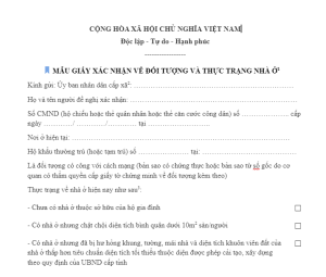 Mẫu giấy xác nhận về đối tượng và thực trạng nhà ở đối với người có công với cách mạng
