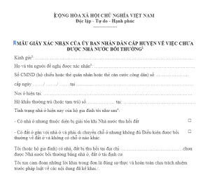 Mẫu giấy xác nhận của UBND cấp huyện nơi đối tượng có nhà đất bị thu hồi