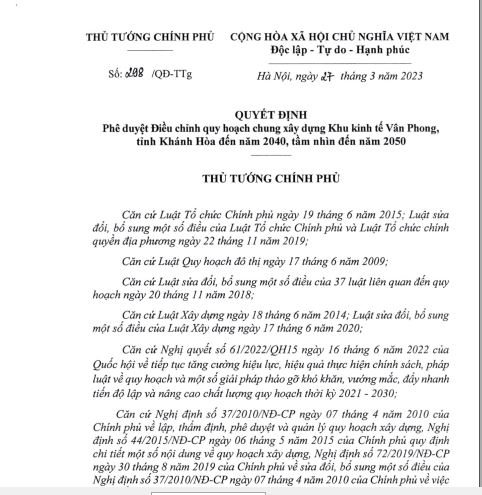 Phê duyệt Điều chỉnh quy hoạch chung xây dựng Khu Kinh tế Vân Phong Khánh Hoà 2040-2050