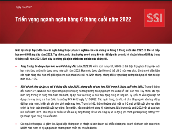 - NIM có thể chịu áp lực so với 6 tháng đầu năm 2022, nhưng vẫn sẽ cao hơn NIM trong 6 tháng cuối năm 2021.