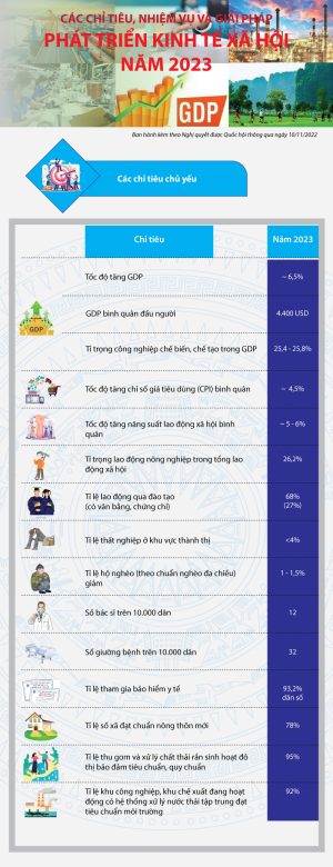 [Inforgraphics] – Các chỉ tiêu, nhiệm vụ và giải pháp phát triển kinh tế xã hội năm 2023