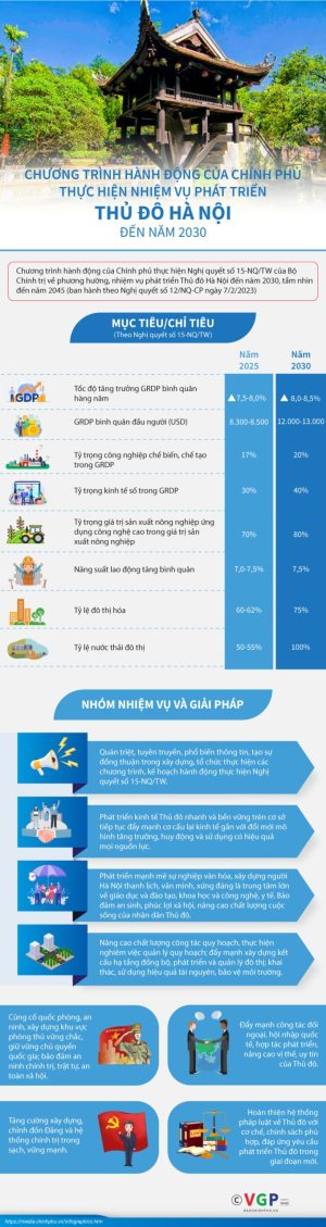 [Inforgraphics] – Chương trình hành động của Chính phủ thực hiện nhiệm vụ phát triển Thủ đô Hà Nội đến năm 2030