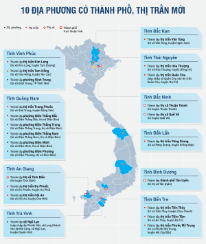 [Inforgraphics] – 10 địa phương có thành phố, thị trấn mới