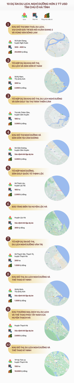 [Inforgraphics] – 10 dự án du lịch, nghỉ dưỡng hơn 2 tỷ USD đang tìm chủ ở Hà Tĩnh