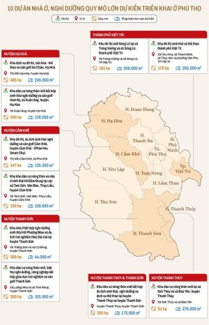 [Inforgraphics] -10 dự án nhà ở, nghỉ dưỡng quy mô lớn dự kiến triển khai ở Phú Thọ