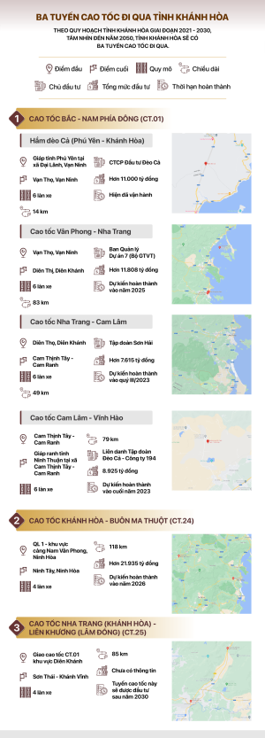 [Inforgraphics] – Lộ trình đầu tư ba cao tốc qua tỉnh Khánh Hòa