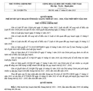 Quyết định 219/QĐ-TTg phê duyệt quy hoạch tỉnh Bắc Giang thời kỳ 2021 – 2030, tầm nhìn đến năm 2050