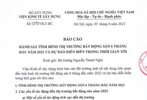 Báo cáo đánh giá tình hình thị trường bất động sản 6 tháng đầu năm 2022 và dự báo diễn biến trong thời gian tới