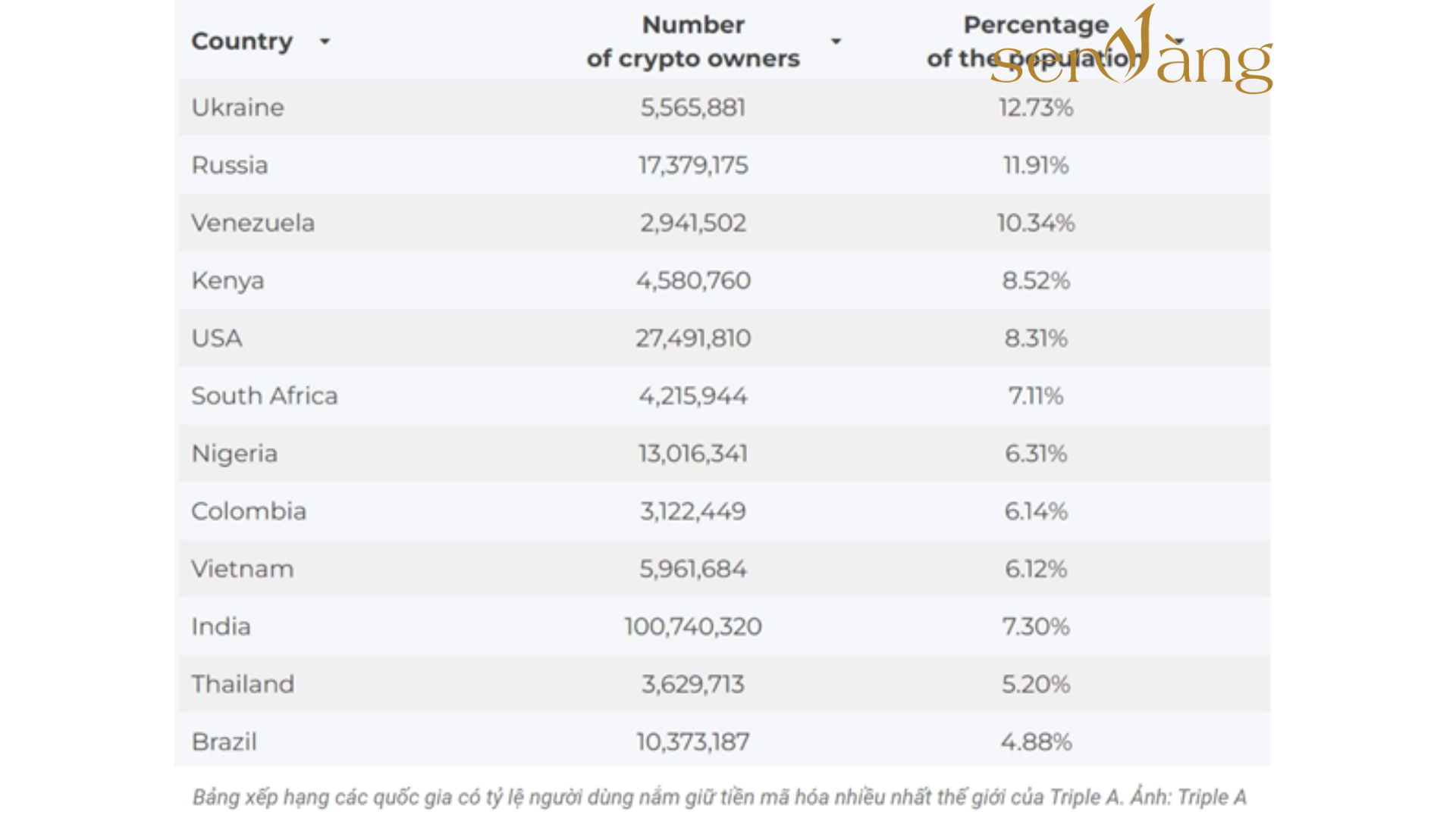 Theo dữ liệu về Chỉ số chấp nhận tiền điện tử toàn cầu (GCAI) do Chainalysis thống kê từ 154 quốc gia và vùng lãnh thổ, Việt Nam đứng đầu với điểm tuyệt đối là 1, trong khi vị trí thứ hai và thứ ba là Ấn Độ và Pakistan lần lượt đạt 0,37 điểm và 0,36 điểm.